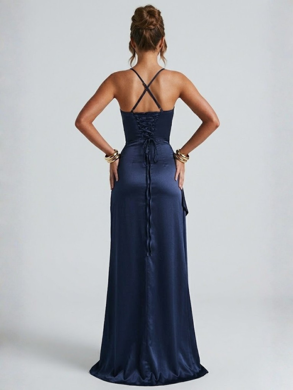 Sa coupe moulante épouse délicatement les courbes et met en valeur la silhouette avec une élégance subtile. Le satin lumineux glisse sur la peau et apporte un tombé fluide qui accompagne chaque mouvement. La fente haute allonge la jambe et ajoute une touche séduisante, tandis que les fines bretelles et le décolleté structuré apportent équilibre et raffinement. Une robe élégante femme pensée pour sublimer la silhouette tout en restant confortable à porter toute la soirée.