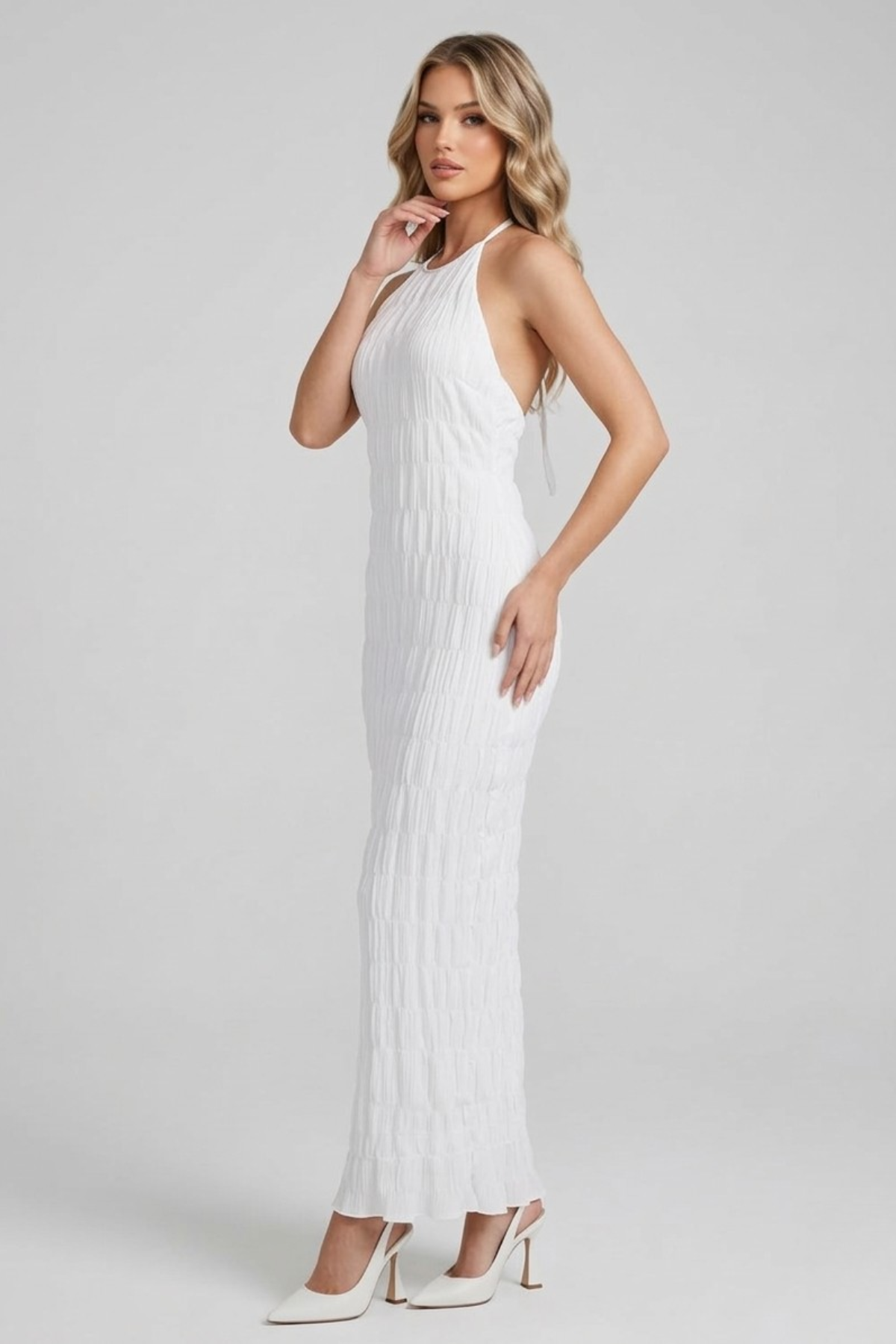 Sa coupe ajustée épouse délicatement la silhouette et souligne la taille avec subtilité, pour un effet naturellement féminin. Le tissu plissé apporte du mouvement et une texture raffinée qui sublime chaque pas. La longueur maxi allonge la silhouette et crée une présence sophistiquée, idéale pour une robe soirée chic. Confortable et flatteuse, cette robe longue femme devient rapidement une pièce incontournable pour celles qui aiment se sentir séduisantes et confiantes.