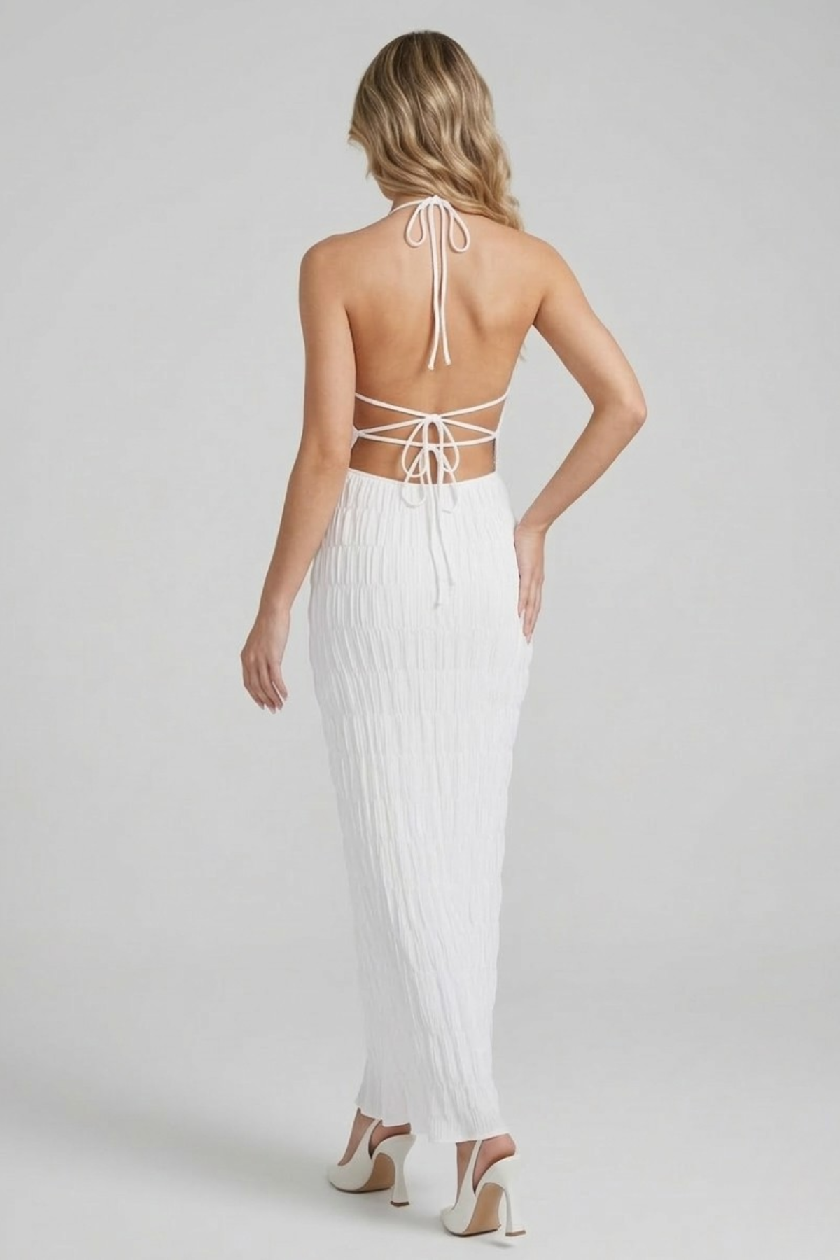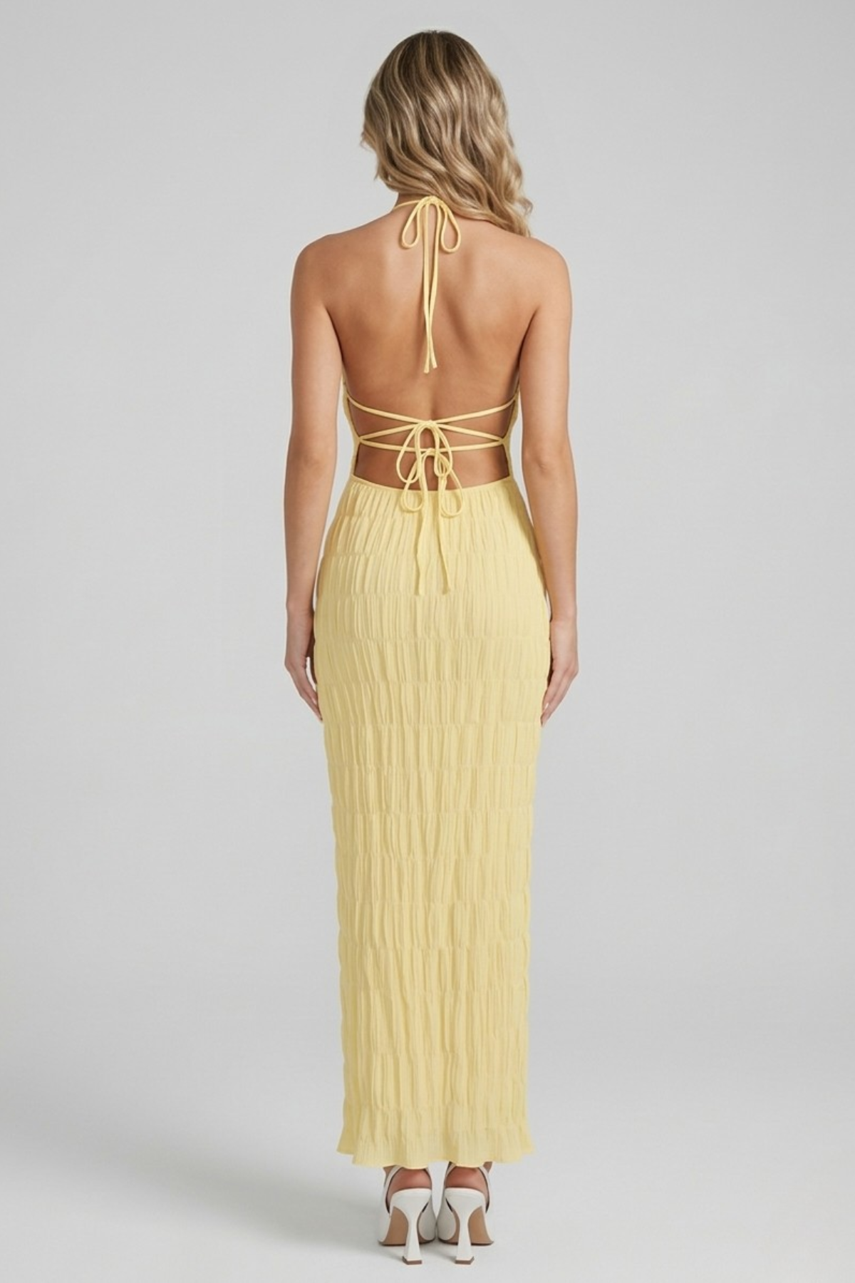 Sous la lumière du soir, cette robe longue attire naturellement les regards. Sa teinte lumineuse et sa coupe halter dévoilent les épaules avec élégance, créant une allure à la fois glamour et irrésistible. C’est la robe élégante femme parfaite pour rayonner lors des moments où chaque détail compte.